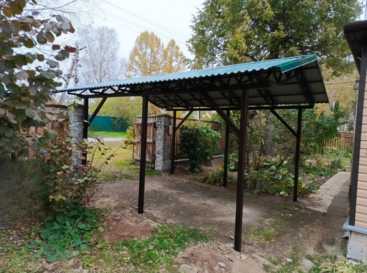 Двускатный навес с крышей из профлиста для дачного дома Арт-712